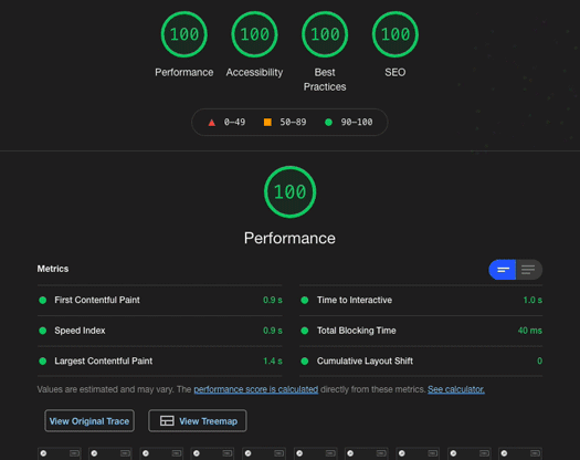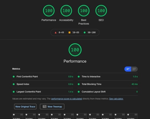 Undertaking all of these tasks saw massive improvements. I have taken these practices (and many more) and applied them to this site, resulting in 100% across the board. Obviously this website is lightweight, but the concepts are the same.